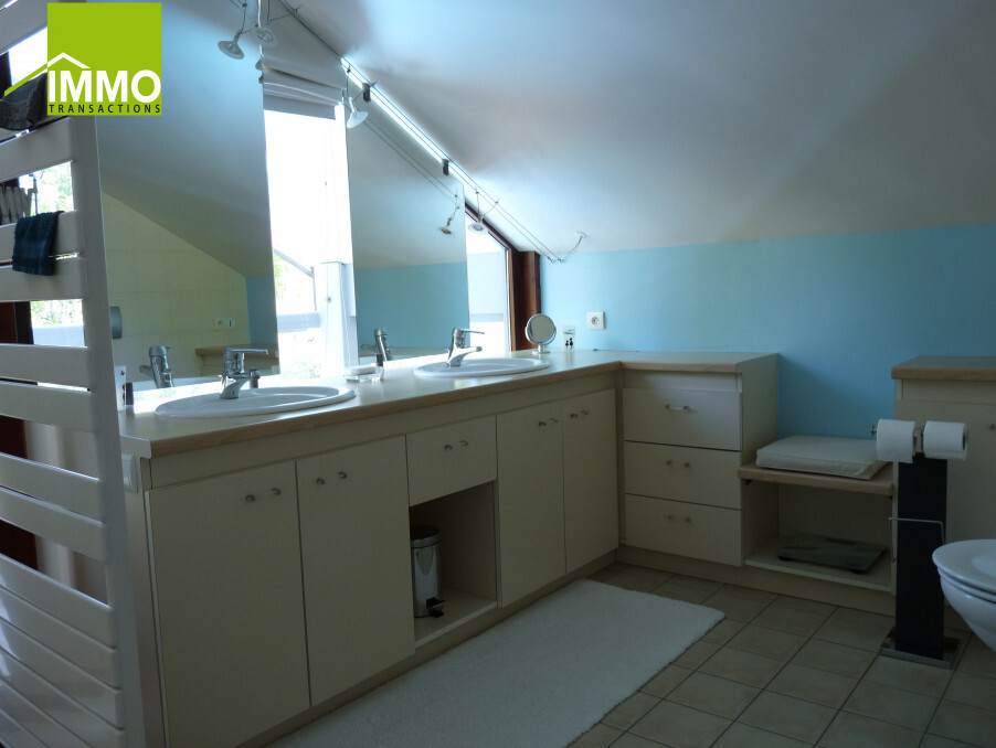 -Prestations haut de gamme : larges baies vitrées avec gestion du soleil, cuisine et trois salles de bain sur mesure, doubles vasques, radiateurs sèche serviette, trois WC suspendus. Volets roulants à commande centralisée. Matériaux de qualité, structure écologique avec murs en dur, poteaux poutre.